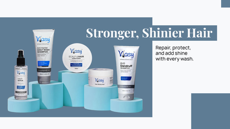 Experience the ultimate scalp care with our Vlasy Antihairfall dailywash Shampoo Formulated to nourish and hydrate your scalp, this cleanser is enriched with the power of Biotene and Caffeine to effectively control hair fall and promote healthy hair growth. The infusion of Aloe Vera leaves...- Rs. 300.00